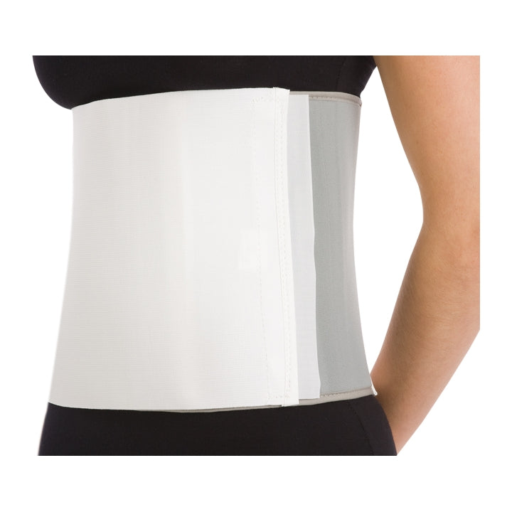 10" elastic and pile/foam laminate with three 9" removable plastic stays. Contact closure to ensure ease of application and removal. Latex free. Ideal for providing compression and support for strains and weakness of the abdominal area.