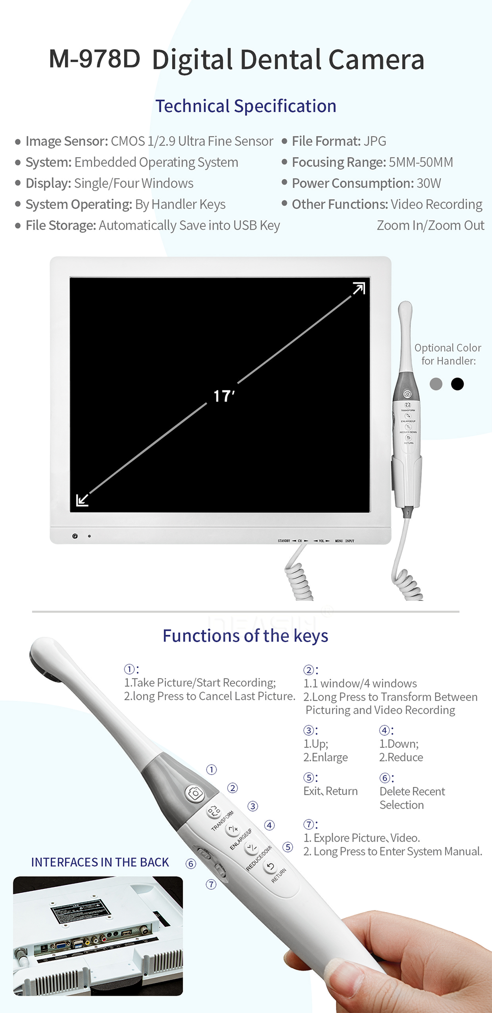 Packing list: 1 set monitor 1 pcs oral camera Other accessories (monitor holder is not including)