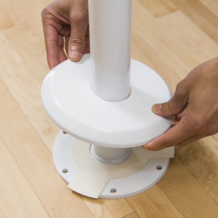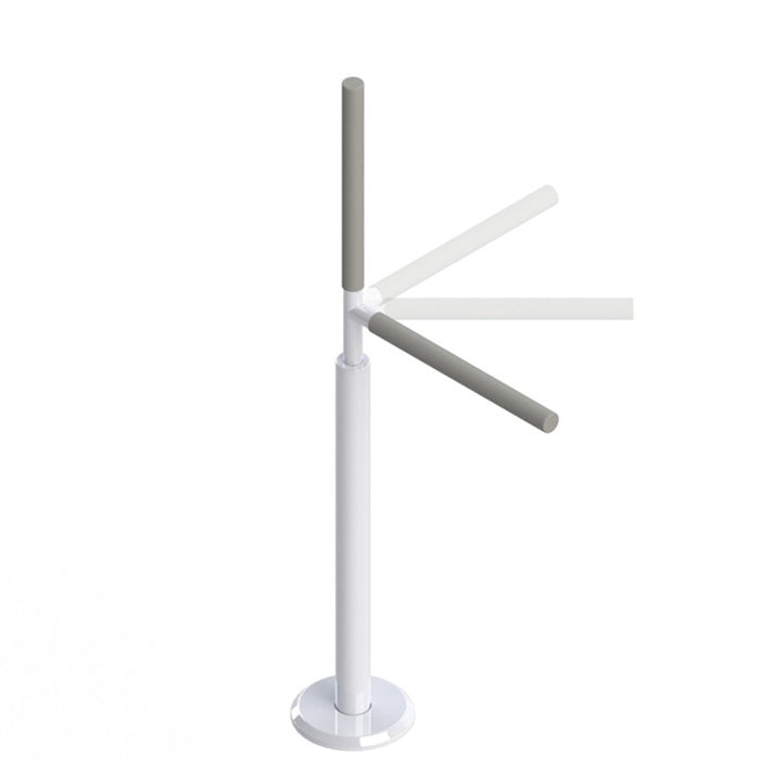 Floor mounted, pivoting and locking. Ideal for those requiring assistance for standing and transferring. Made of steel with a rugged enamel finish. Height adjustable from 30-38”. Latex free grip length 16”. Capacity: 450 lb.
