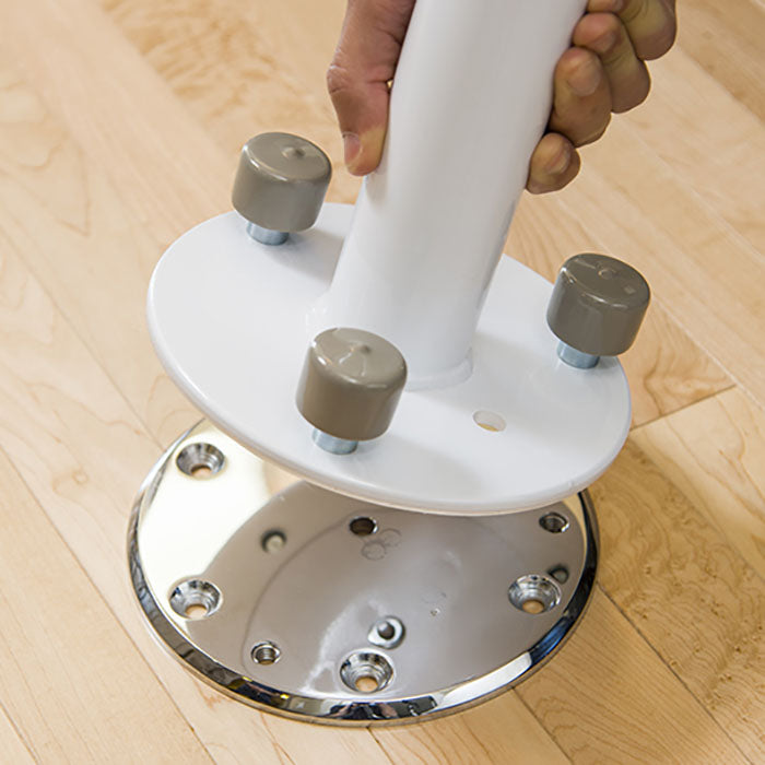 Each portable model secures and releases from a low profile floor mounted plate. Simply remove pole when it is not needed. Contractor Recommended.