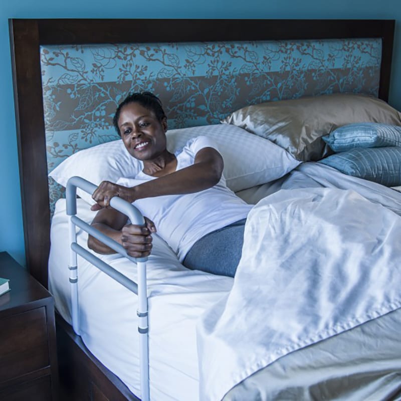 For in-bed support that’s secure and easy to install, nothing compares to the Assista-Rail. The rail slides between your mattress and box spring and secures with a safety strap. The rail is height adjustable to accommodate various mattress thicknesses. The Assista-Rail has multiple padded non-slip handles for maximum comfort while gripping, and also features a convenient bed organizer that keeps your belongings in reach, right beside you.