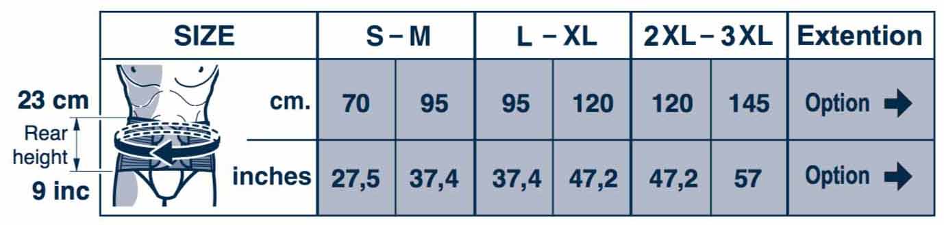 This Lumbar-Sacral Brace acts as an immobilizing device for the lumbar-sacral region and its’ primary function is to reduce pain caused by lumbago, sciatica and ischialgia.