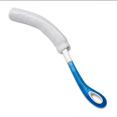 Designed to facilitate reaching and washing. The wash cloth does not absorb water which make the product light and balanced even when wet. The handle is oval and has a surface which enables a secure grip. The wash cloth is machine washable and replaceable.