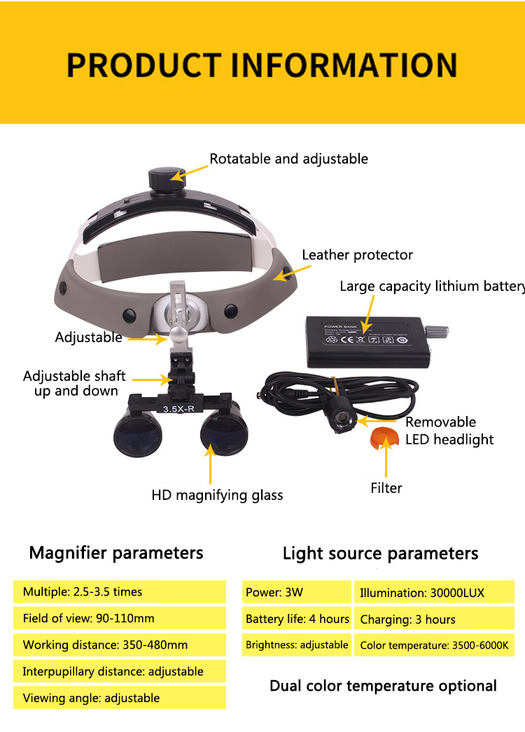 ENT 2.5X 3.5X Dental Led Headlight Magnifying Glasses Surgical Binocular Loupes led surgical headlight