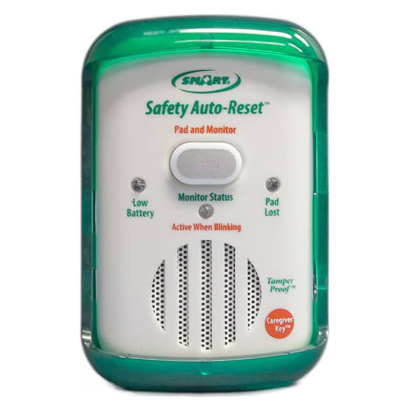 The TL-2100S Monitor is designed for use with all Smart Caregiver corded sensor pads and mats. Simply plug a sensor pad into the monitor and place the pad under the resident in a chair or bed. When the resident gets up and pressure is removed, the alarm will sound notifying caregivers that the resident is on the move. This alarm features a Safety Auto-Reset™ Function which will automatically reset and silence the alarm when pressure is re-applied to the sensor pad.