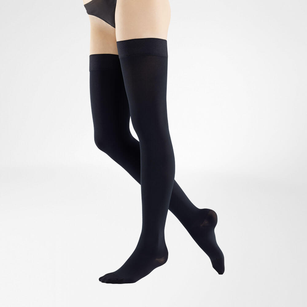 Deep action plus comfort: Thanks to its innovative, seamless knit construction and its high microfiber content of over 40 percent, the specialist in advanced vein problems offers effective support for natural vein functions with easy handling and high wearing comfort. The durable and easy-care material makes the VenoTrain impuls+ a reliable and uncomplicated companion in everyday life.